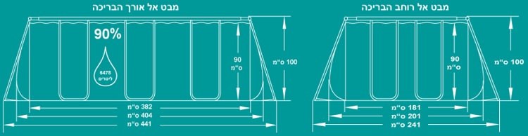 מידות הבריכה בס"מ: א' 404, ר' 201, ג' 100.
